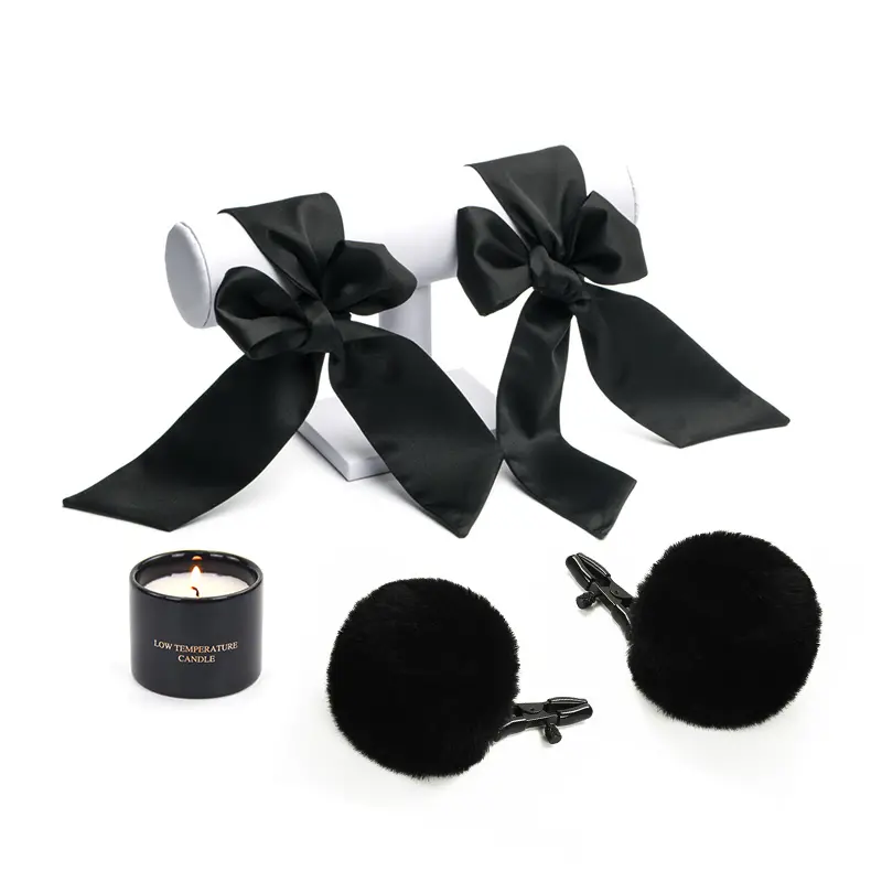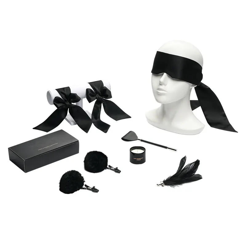 - If you are using the blindfold, gently place it over your partner’s eyes, enhancing their sensory deprivation and anticipation.